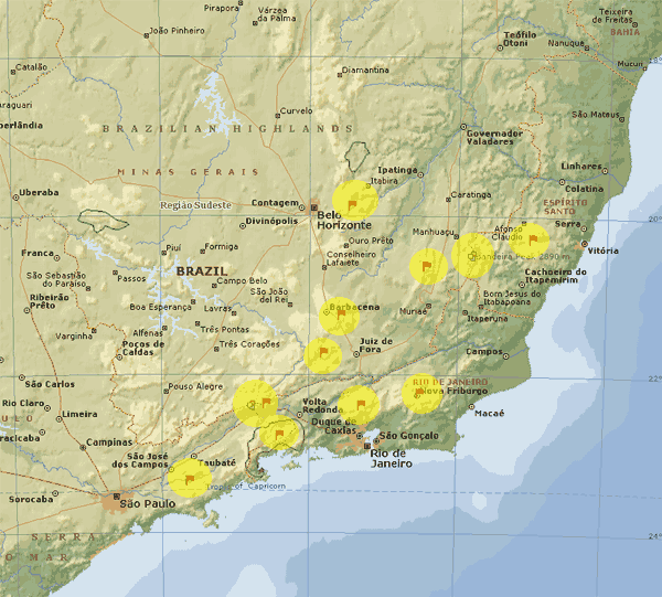 | Brazil (Minas Gerais, Rio de Janeiro, São Paulo) | |||