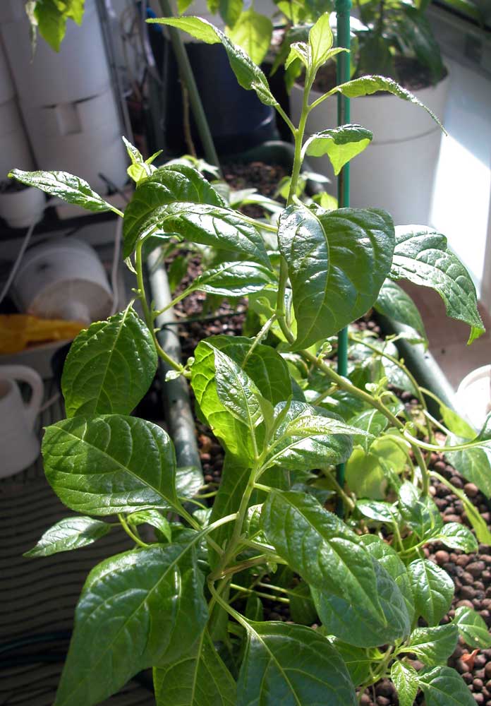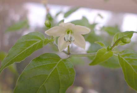 The relationship between the before mentioned domesticated trio is still at best unclear. They are genetically almost similar plants, and e.g. Hunziker (2001) has treated them as just variations of one species. Other researchers disagree, though, and the considerable external differences between these plants justify treating them separately here. It has been suggested that Annuum, Chinense and Frutescens all have a common wild form, but a long ago something happened which formed the still quite wild-like Frutescens form. The Chinense form is believed to have developed from Frutescens. This theory isn't without its weaknesses, though, and the only thing we can be sure of is that all these three plants cross quite easily, and can be used to improve each other commercially.