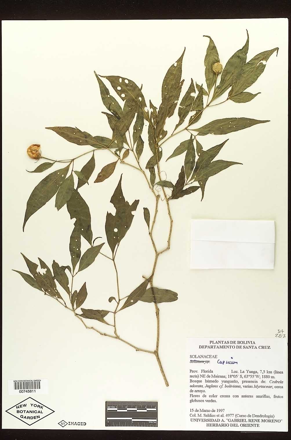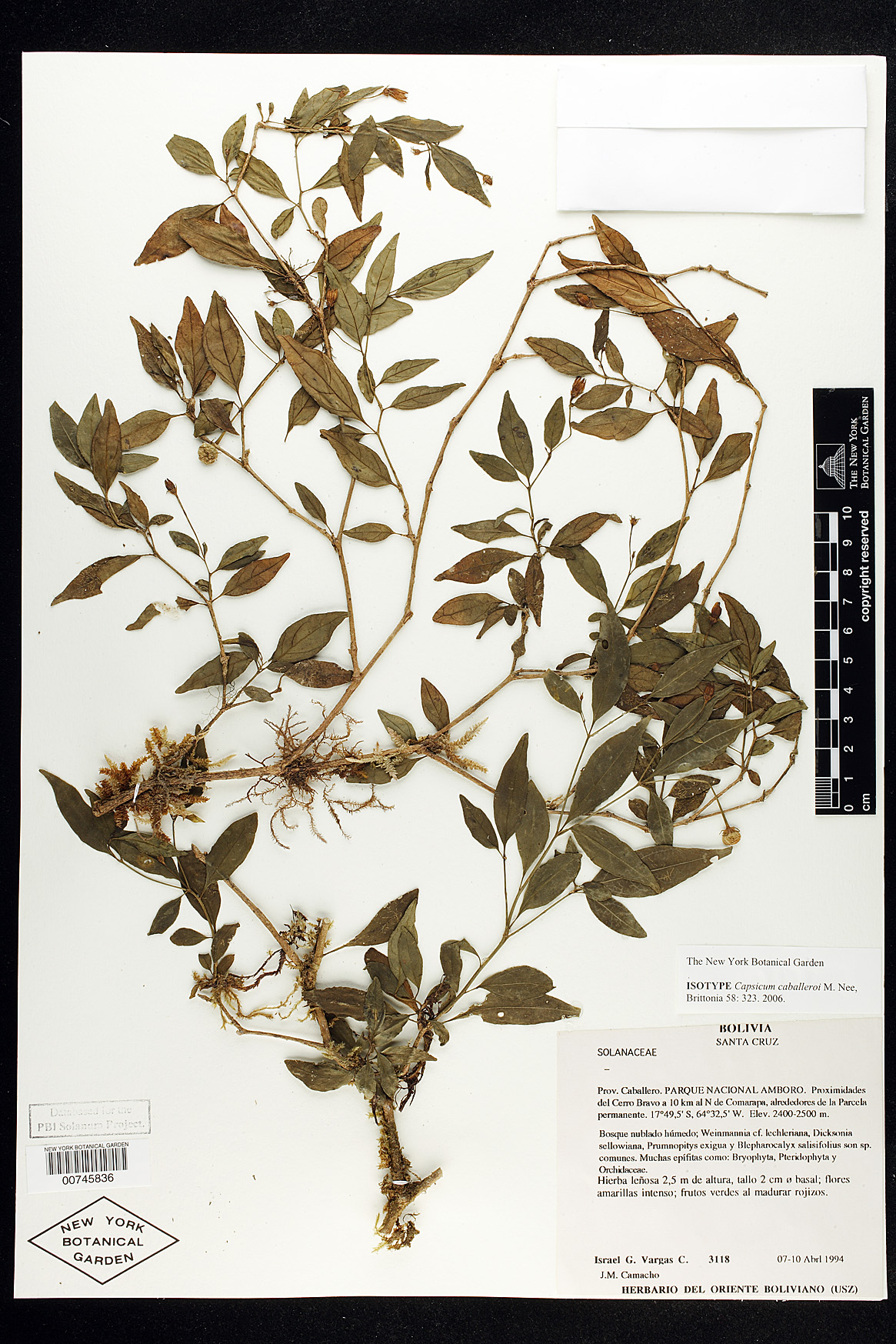 A large plant. Formerly often believed to be the same as c.flexuosum. Grows in 500..1300m altitude in humid, bushy highlands. Appears to be a rather typical eastern capsicum. Related to c.flexuosum and c.pereirae. Seeds are not available. |